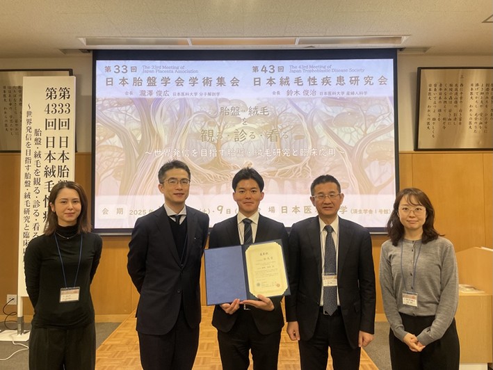 大学院生の鈴木直宏さんが第33回日本胎盤学会にて相馬賞を受賞